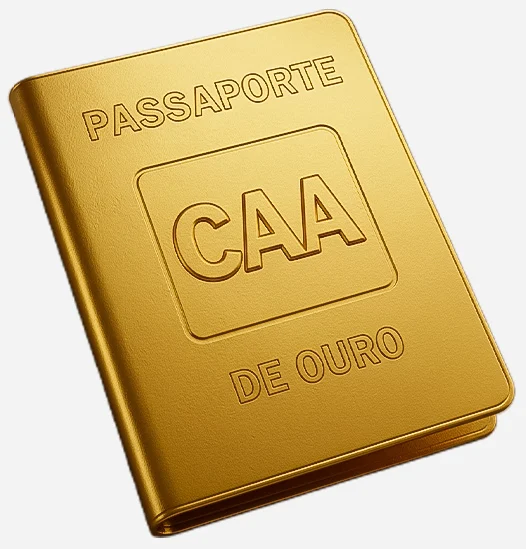 O Passaporte de Ouro CAA é o seu acesso premium a todo o ecossistema de cursos da CAA por 10 anos completos.